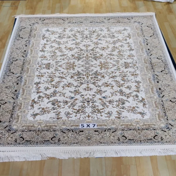 Design Features: Central medallion, arabesques, and delicate floral motifs with silk highlights.